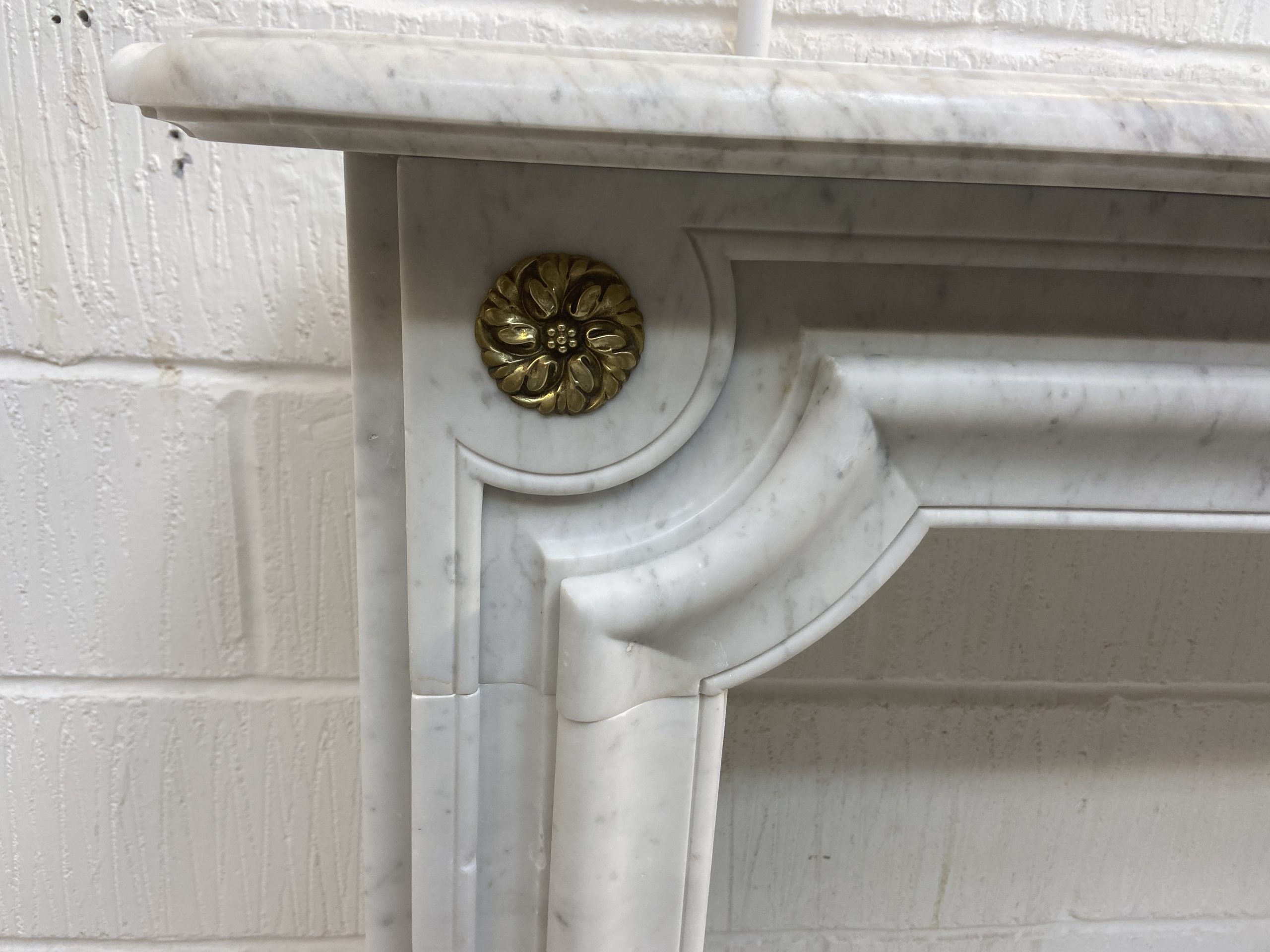Belgian circa 1910 chimney-piece with later brass paterae.