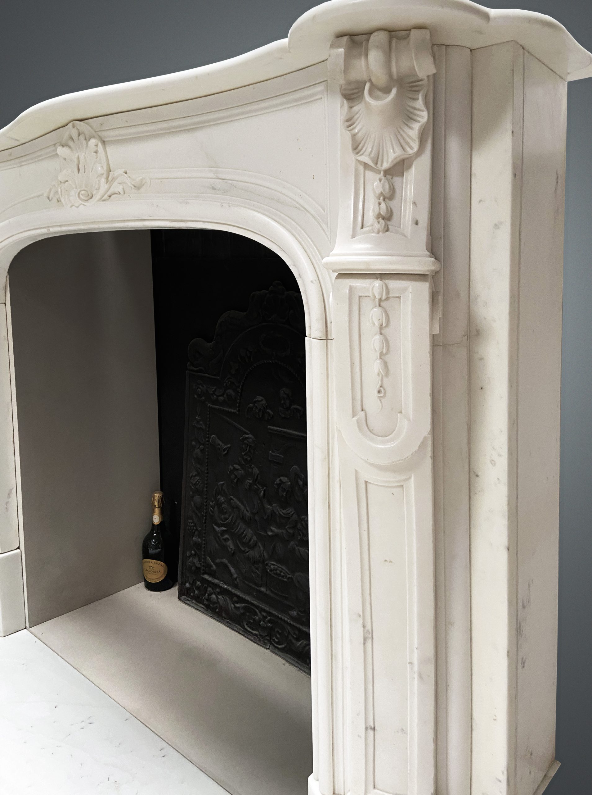 An antique, early 19th century, English, statuary chimney-piece in the French manner, circa 1830.