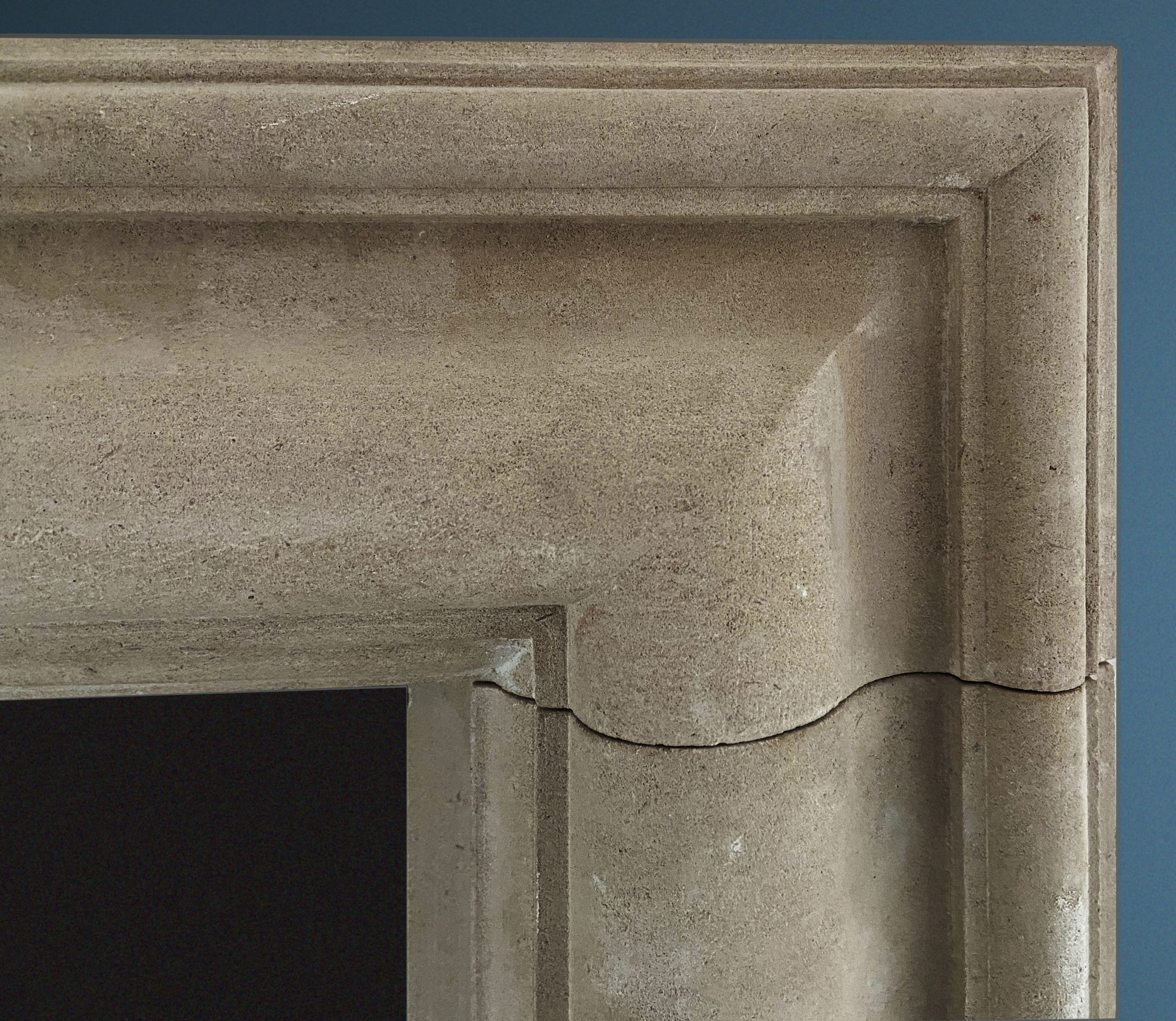 A modern Portland stone chimney-piece of swelling moulding, or bolection form, of modest proportions.
