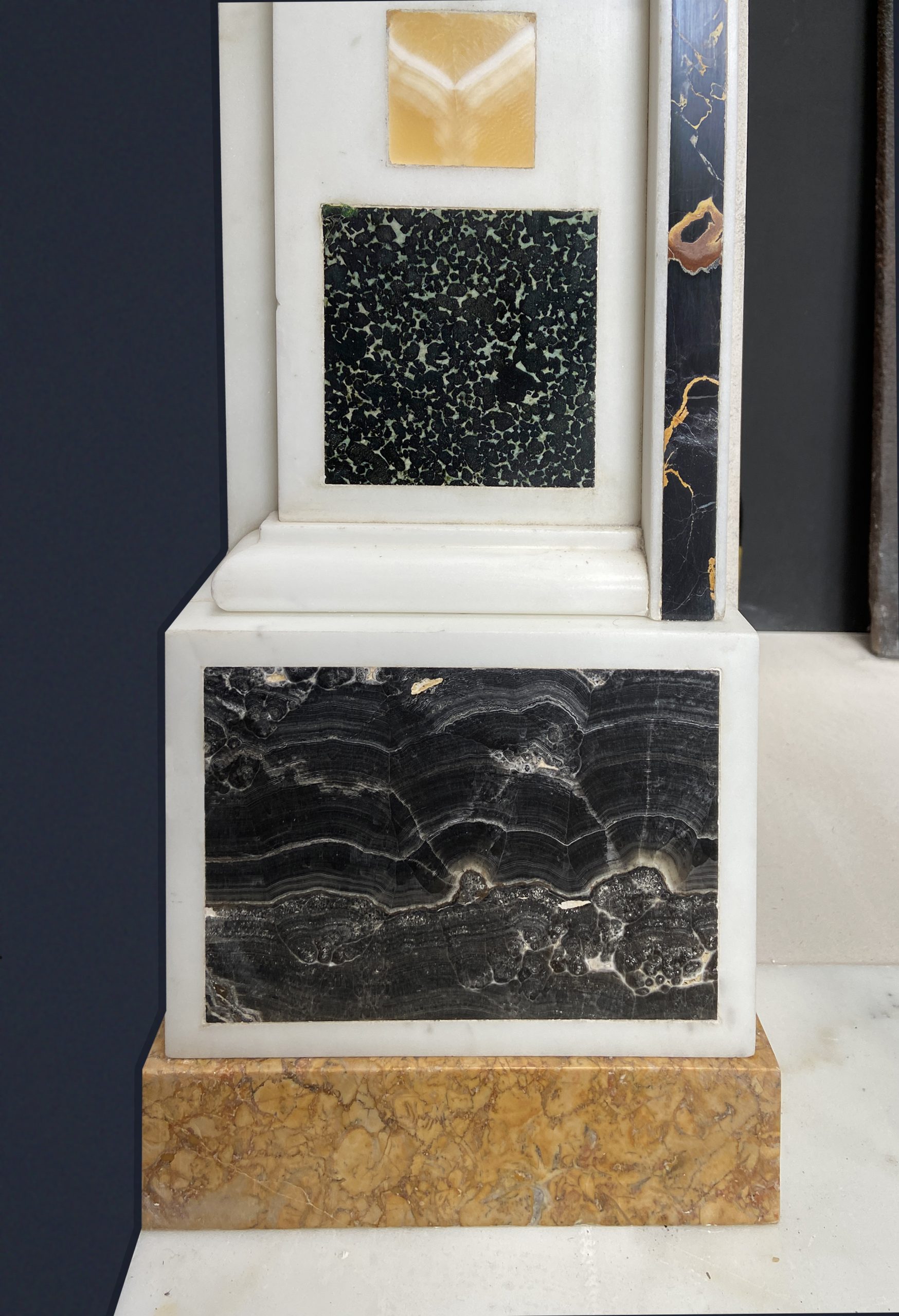 Having restored a number of Chimney-pieces made in Italy in the late 18th Century which incorporated specimens of ancient ornamental marbles we manufactured this decorative Chimney-piece utilising some of the finest samples of marbles we could find.