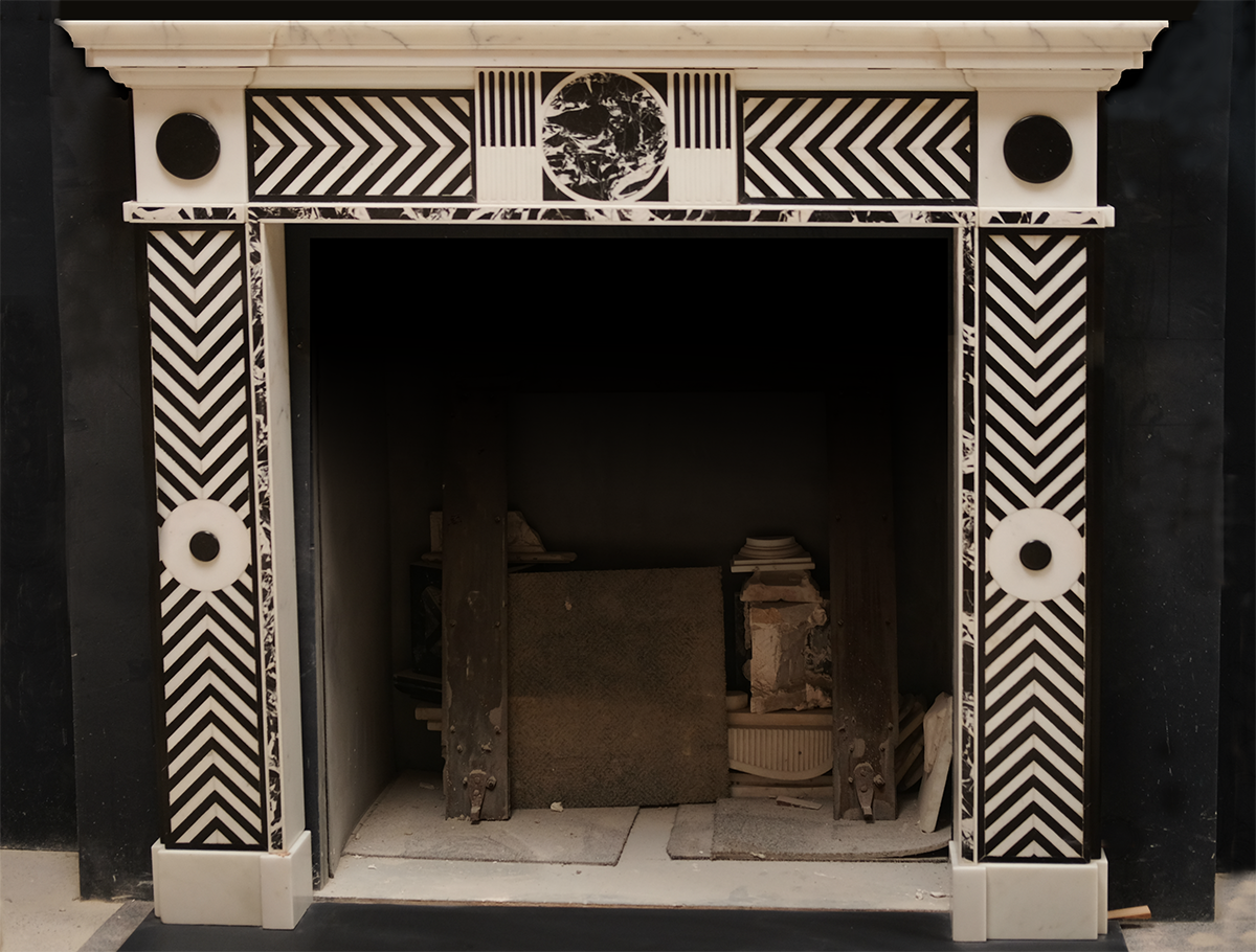 Modern black and white marble chimney-piece after an 18th century Irish original