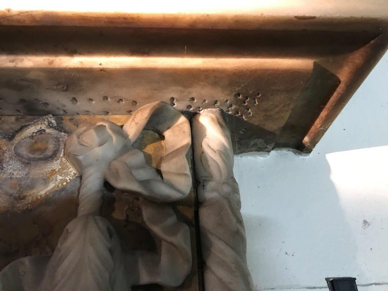 Furthermore, where smoke staining has damaged the piece we can extract staining to reveal the original colour of the marble when first finished. This is predominately done with poultices or non-abrasive cleaning agents on careful a test-trial basis.