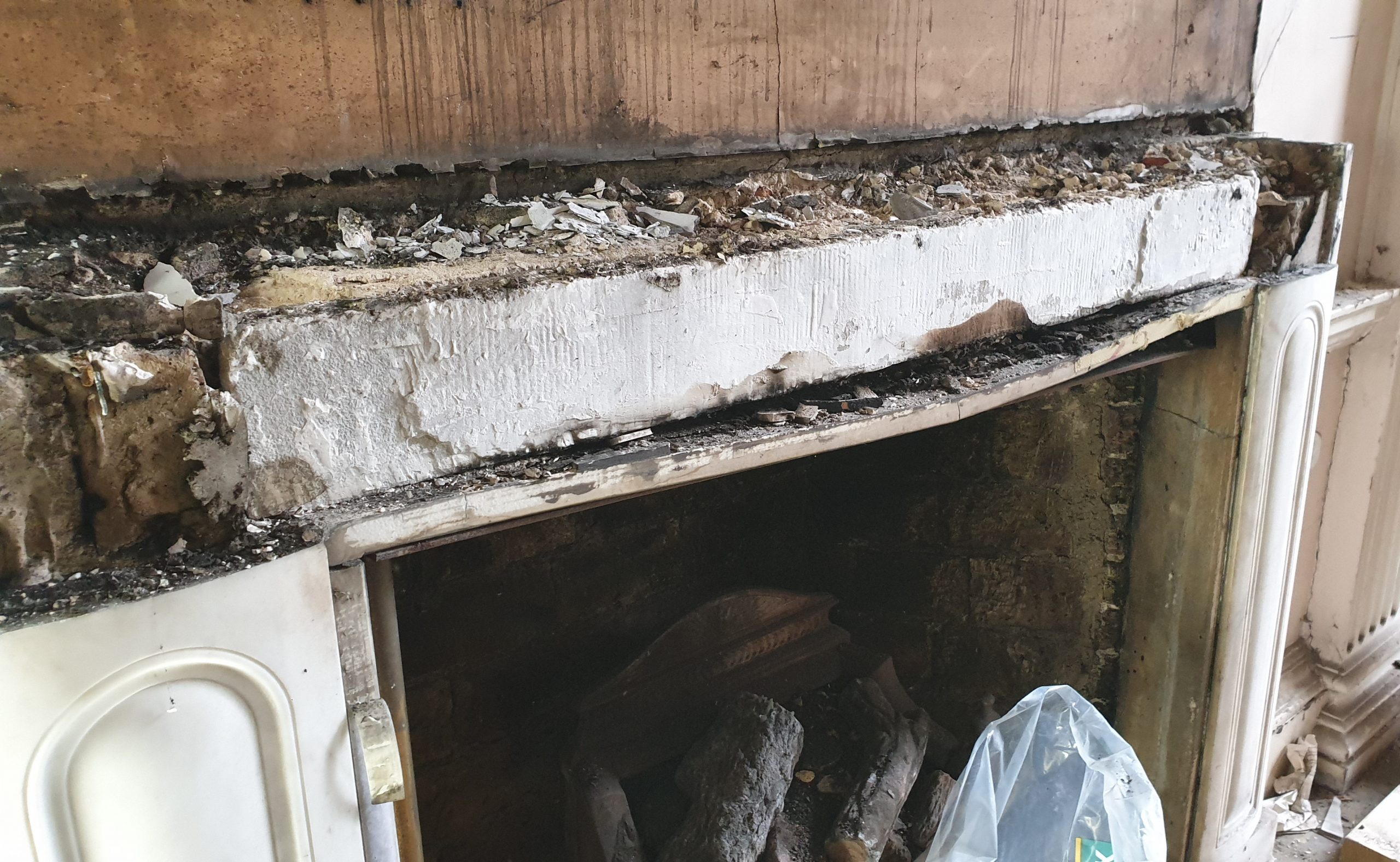 Although many chimney-breasts have additional supports set into the brickwork at some height above the fireplace opening, the brick arch and any chimney bar that form the top of the fireplace opening, needs checking for structural integrity.